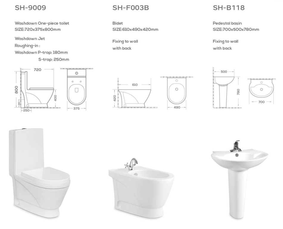 Wholesale Bathroom Suite – Toilet, Bidet and Basin Set SH-9009/SH-F003B/SH-P118