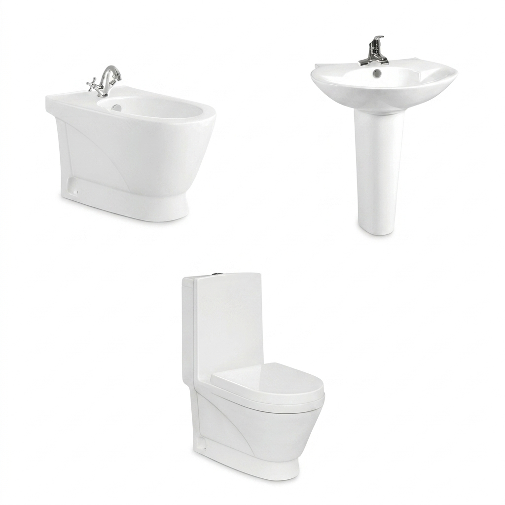 We offer wholesale access to a reliable and market-ready bathroom suite. This set includes a one-piece washdown toilet, a floor-mounted bidet, and a washbasin; balancing performance, durability, and installation flexibility, it serves as a practical choice for distributors, contractors, and project suppliers.
