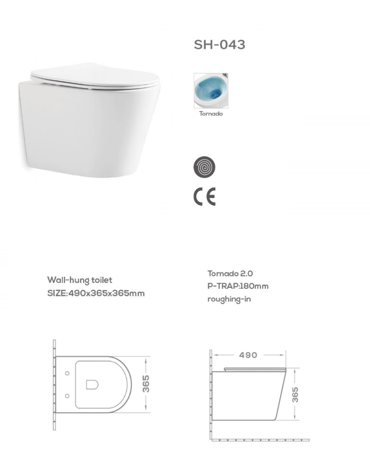 Wholesale Tornado-Flush Wall-hung Toilet SH-043, Hidden Flushing Hole – CE, WaterMark, SASO Certified