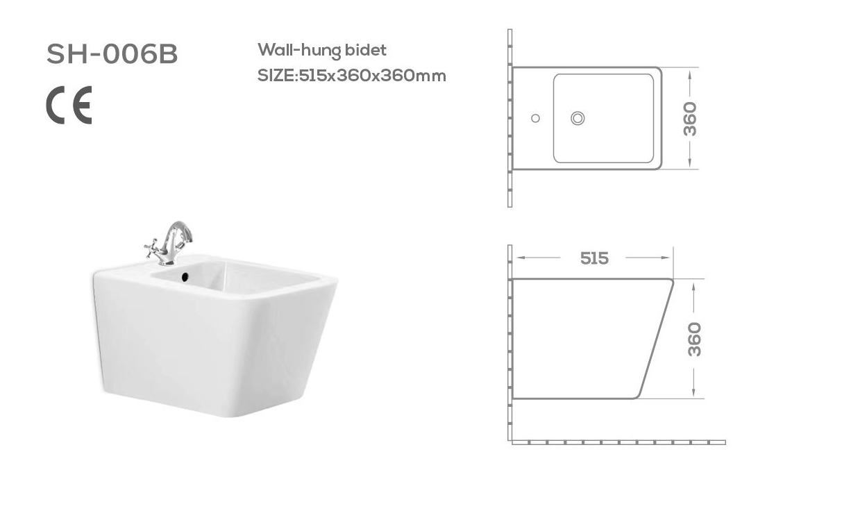 The Wholesale Wall-Hung Bidet SH-006B is designed with a strong focus on a stylish, modern aesthetic, making it an excellent choice for contemporary bathroom projects worldwide. Its elegant appearance makes it particularly well-suited for hotels, luxury apartments, and upscale residential developments. Contact us for factory pricing.