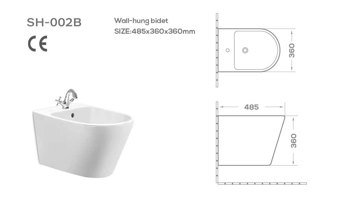 Wholesale ceramic bidet. SH-002B features a streamlined, suspended design that maximizes floor space and simplifies daily cleaning. Made of high-quality ceramic, it boasts long-term durability and stain resistance, meeting international standards. Contact us for factory pricing.