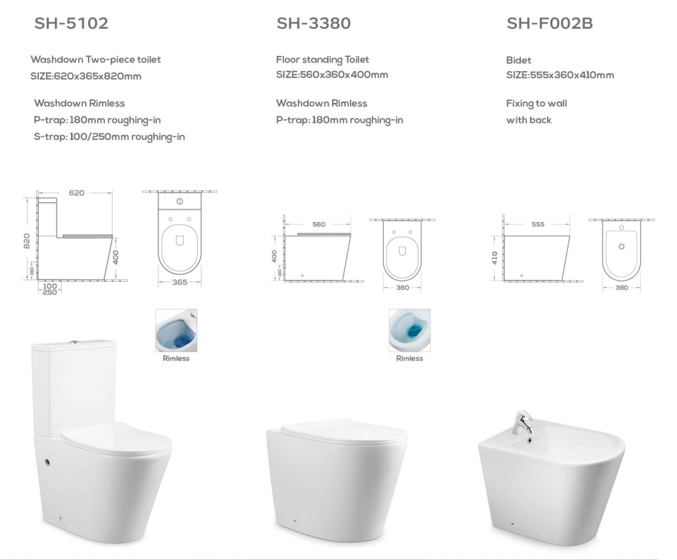 | Modèle | Toilet: SH-5102/SH-3380 Bidet:SH-F002B |