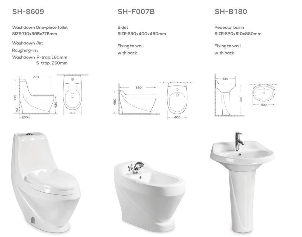 Bulk Bathroom Suite Supplier – Wholesale Toilet, Bidet, and Basin Set SH-8609/SH-F007B/SH-P180