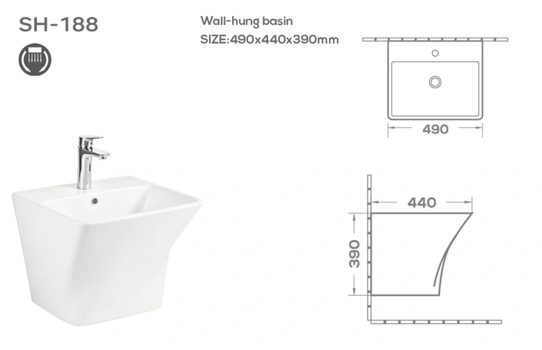 Wholesale wall-hung basins. This wall-hung basin series features a simple, space-saving design that blends perfectly into modern bathroom environments. One of the key advantages of the SH-188 series is its diverse range of surface color options, helping to create a more sophisticated and personalized bathroom experience.