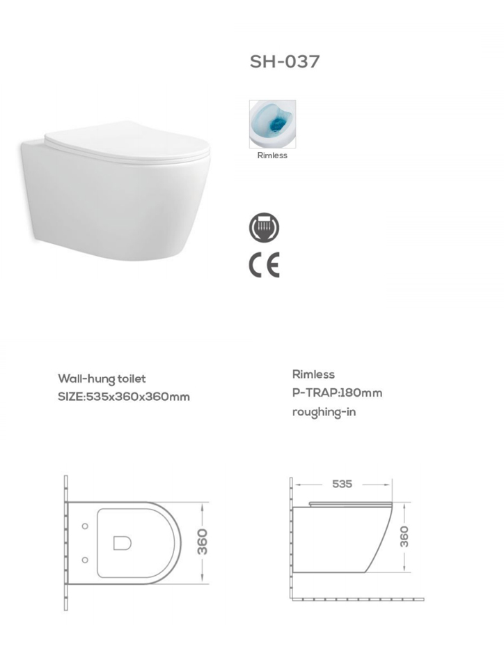 ヨーロッパ式リムレス壁掛け式トイレ SH-037- 工場直接供給、OEM および ODM サポート