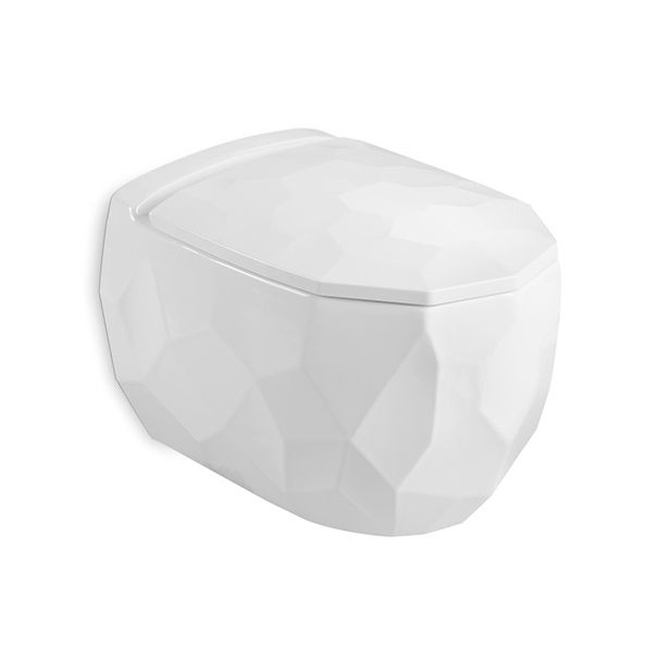 - 幾何学的なデザイン: この卸売り壁掛け便器は、ユニークな「ダイヤモンドカット」の多面的なデザインが特徴で、モダンで豪華な外観を作り出している。.
