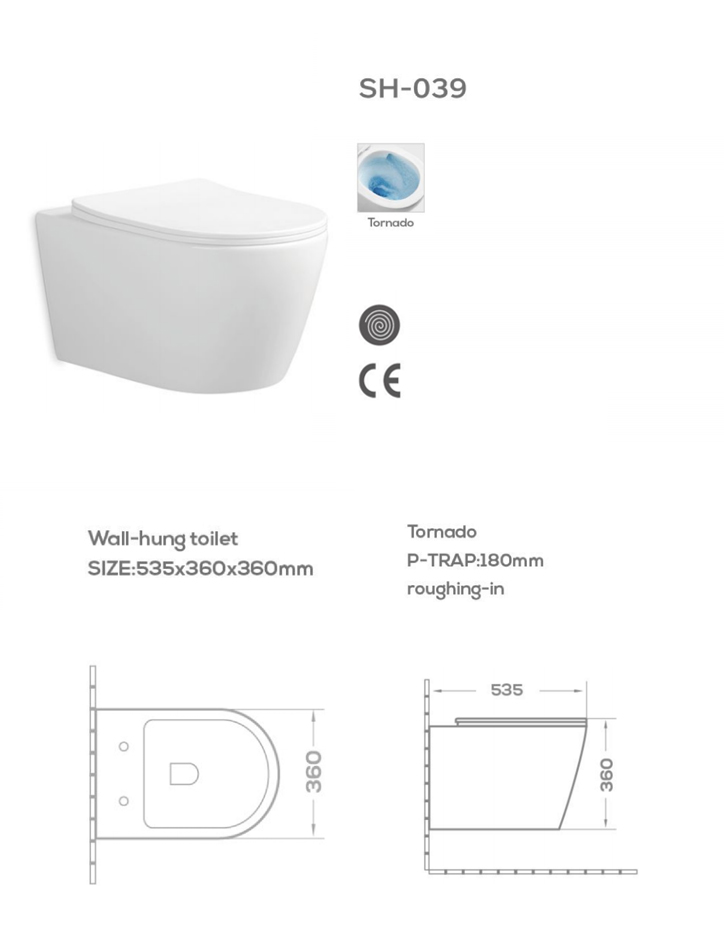 Wholesale High-Performance Wall-hung Toilet SH-039 – Tornado Washing Technology, Powerful Flushing