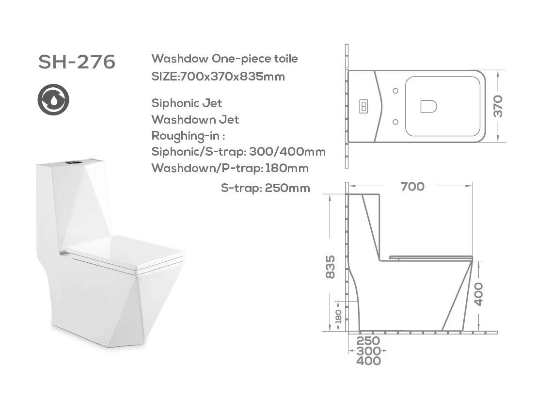 These wholesale toilets feature a bold geometric diamond design, breaking away from traditional rounded shapes to enhance your toilet brand image and attract customers who value uniqueness and style. In the highly competitive bathroom market, innovative design is a key differentiator. SH-276 offers you a unique product line to improve profit margins.