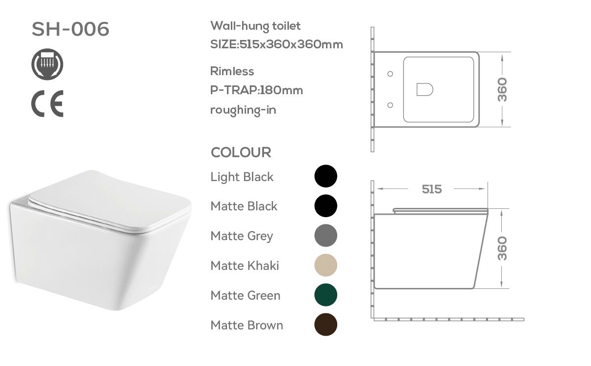 The SH-006 features a sleek, minimalist design that integrates a host of advanced technologies—including a rimless bowl, antimicrobial glazing, and water-saving flushing systems—making it the ideal model for developing your own private-label product line.