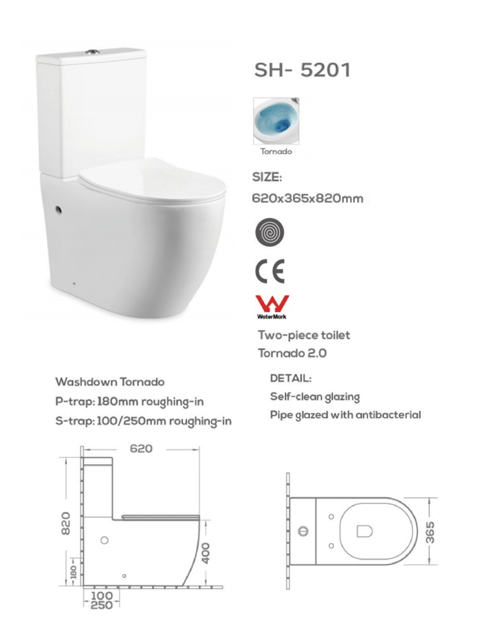 Wholesale Two-Piece Tornado Flush Toilet SH-5201 – CE & WaterMark certified