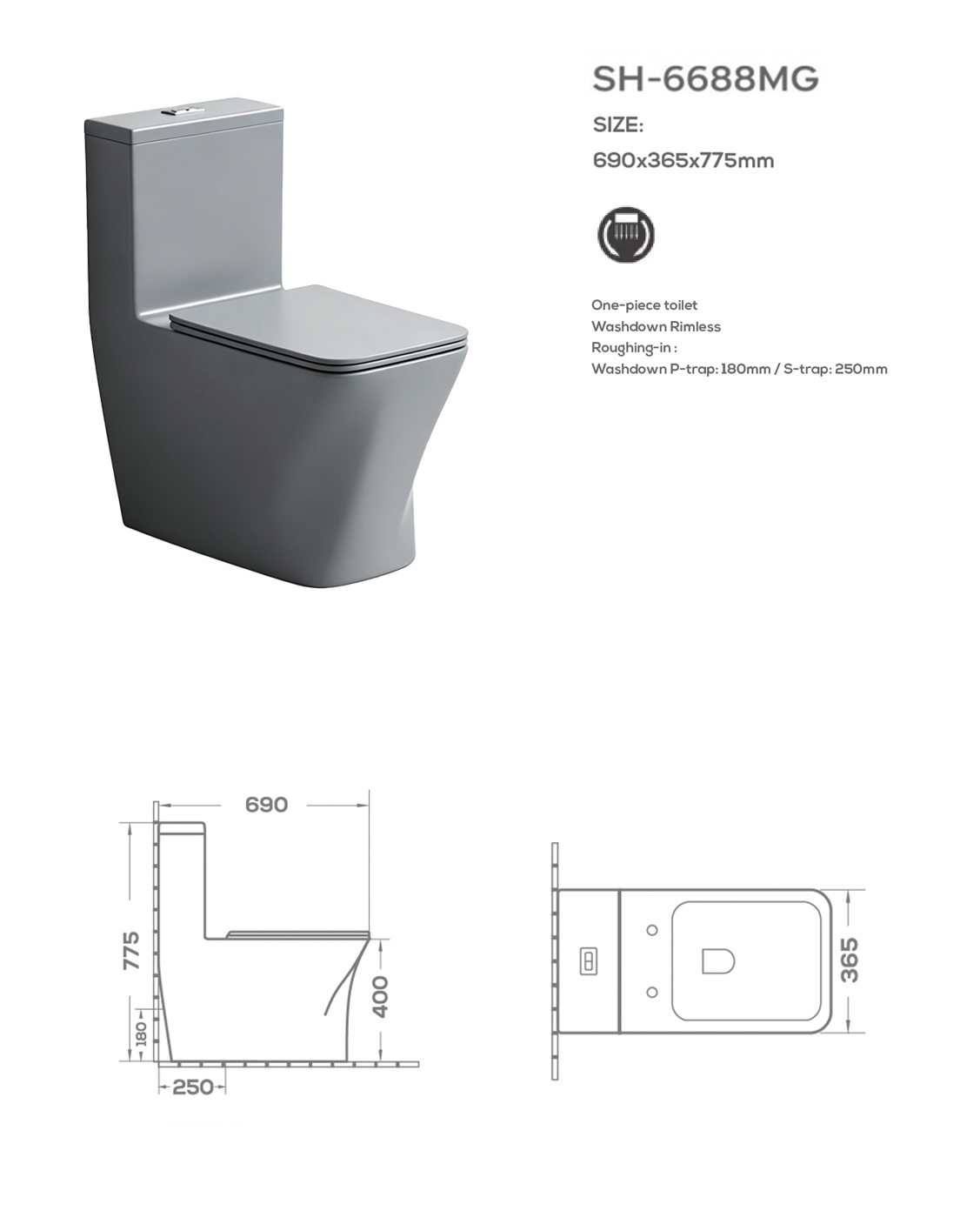 Factory Wholesale Modern Washdown Matte Gray One-Piece Toilet SH-6688MG – Hotel-Ready Design